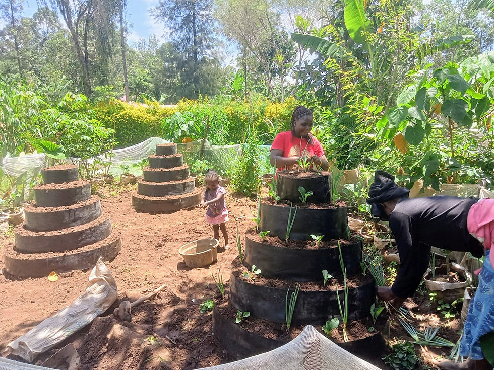Vertical farming helps families grow lots of veggies for the kitchen in a very small space. The cone gardens Jackline wanted make great use of scarce compost, require little water in dry seasons, and last for years.