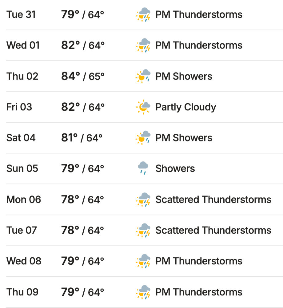 On Fridays in the office, workdays end at 5:00. Or at 4:15, if rain is coming. Or at 6:00, if rain comes suddenly and traps people in the office before they can hurry home.