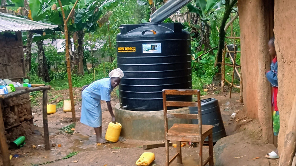 But families joining our program have on average less than 25 gallons of water storage. Usually, that's a few repurposed plastic cooking oil containers, which fill up in mere minutes during an evening thunderstorm.